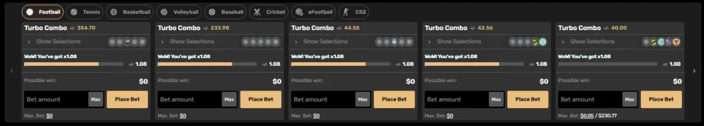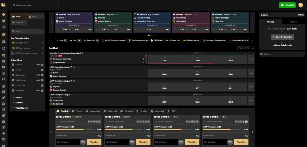 Uma casa de apostas verdadeiramente ótima deve atender a uma vasta gama de paixões, e a Fairspin cumpre isso. A nossa plataforma oferece um universo extenso de eventos desportivos, desde as ligas globais mais populares até às competições de esports de crescimento mais rápido.